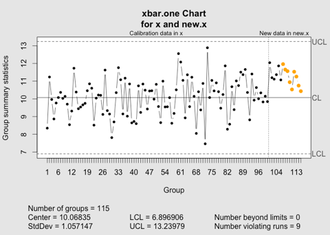 is a library for statistical quality control. Back in the 1950s, the now defunctWestern Electric Company was looking for a better way to detect problems with telephone and eletrical lines. They came up with a set of rules to help them identify problematic lines. The rules look at the historical mean of a series of datapoints and based on the standard deviation, the rules help judge whether a new set of points is experiencing a mean shift.