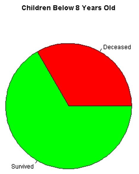 In the Titanic dataset, the question of age versus chance of survival can be reformed by understanding what we define as a "child". It is not surprising that the average life expectancy has increased throughout the years. Looking at the "Our World in Data" visualization, it can be seen that England in 1911 had an average life expectancy of 51.4, a year before the sinking of the Titanic in 1912. Compare this to the average life expectancy in 2011 of 80. It becomes clear that it is easy to retroactively apply our definitions of adulthood onto the dataset. For our model, eight years old was chosen as the boundary of childhood. With this inference, the corresponding pie chart looks like: