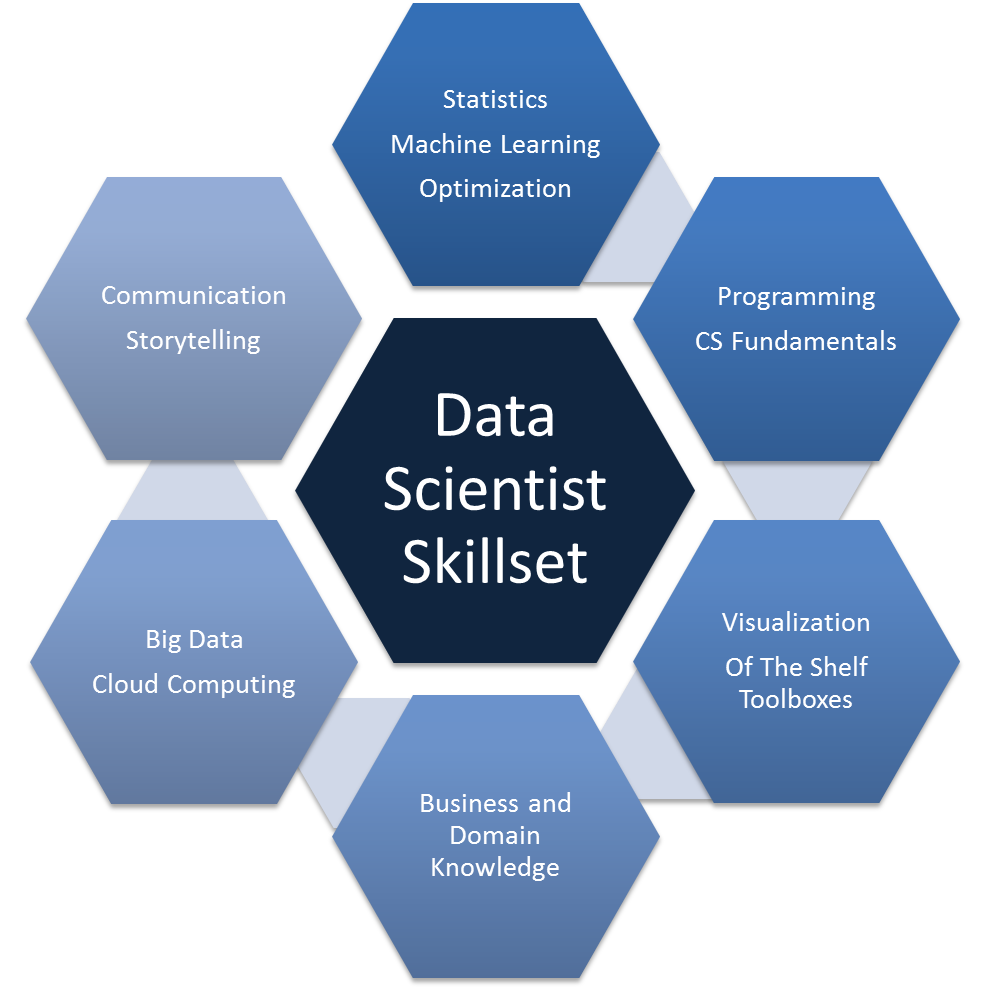 A data scientist should have the skills of all the individuals I have mentioned so far. In addition to the skills mentioned above, a data scientist should have rapid prototyping and programming, machine learning, visualization, and hacking skills.